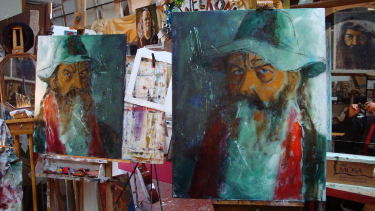 Tijdens de tentoonstelling ‘Atlas van de Ziel’ toont Marinus Theodorus van Nistelrooij dat geen mens tot één gezicht te herleiden is. “Het zelfportret heeft zich als kunstobject gaandeweg verheven tot mijn levenswerk. Wat ik daarvan leerde, is dat iets wat met zoveel passie gedaan wordt niet meer gecompliceerd kan zijn en sowieso goed verloopt. Mijn zelfportretten komen in alle eenvoud tot stand, het is een driehoek. De spiegel voor mij, de schilder in mij en daartussen de ezel als drager. Dan is er nog licht, donker en kleuren en dat is het, daarin gebeurt het. Iets zichtbaars voelbaar maken. Ik spreek met mezelf af om akkoord te gaan met wat ik zie in de spiegel en geef ruimte om de waarheid iets te overdrijven.”